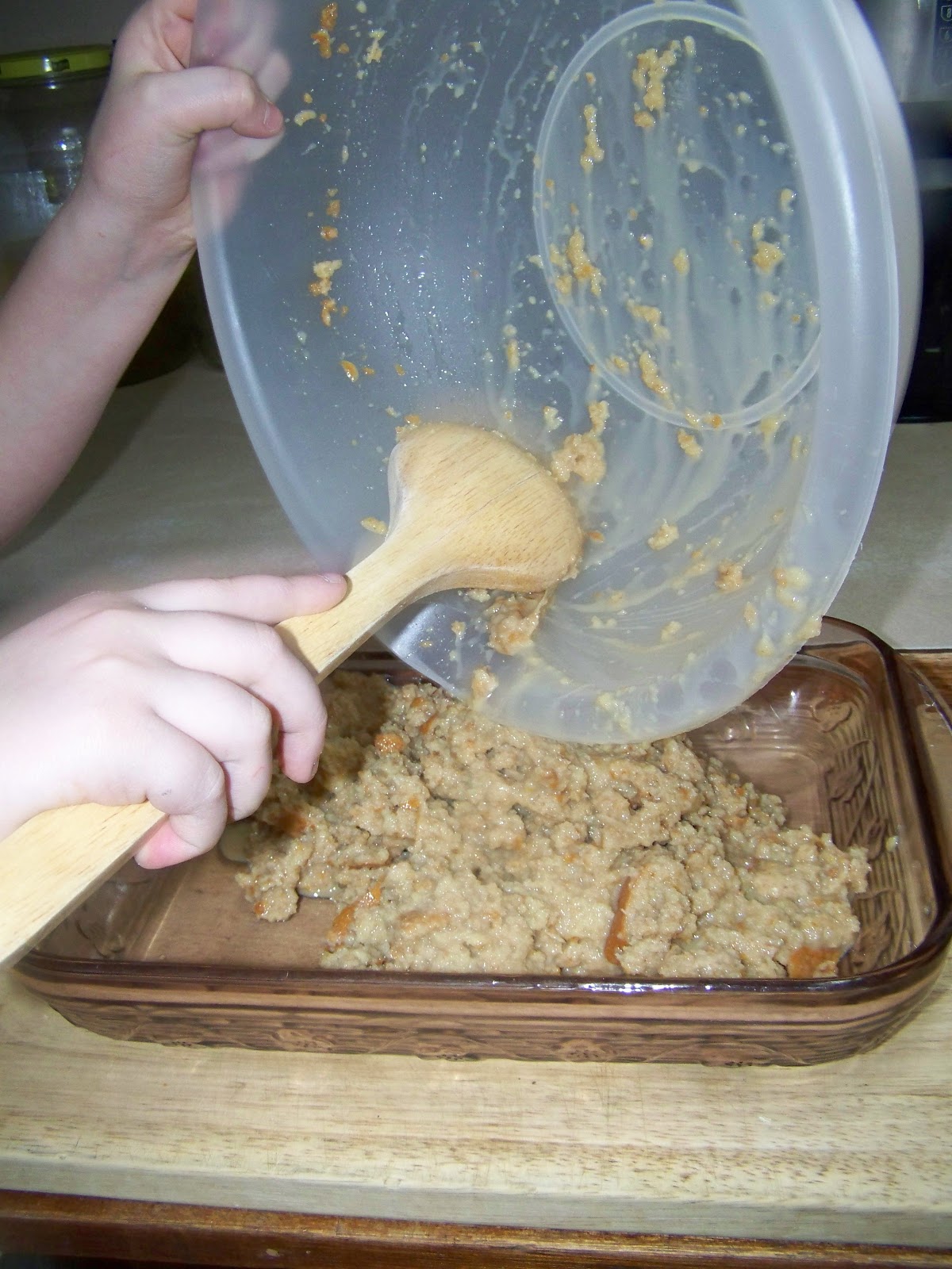 | 3) We mixed it together until the bread mixture was moistened all the way through. |