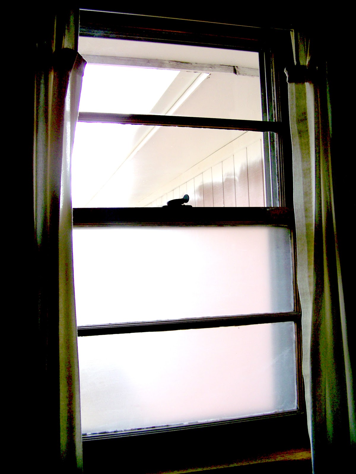 While I'm happy with the results, it took a long time for me to complete the project. With some great suggestions, from my husband and a project idea that I found on Pinterest , I gave the window film another try in both the bathroom and in my daughters' bedroom.