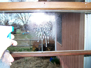 | 3) Spray section to be covered liberally with Windex Glass Cleaner |