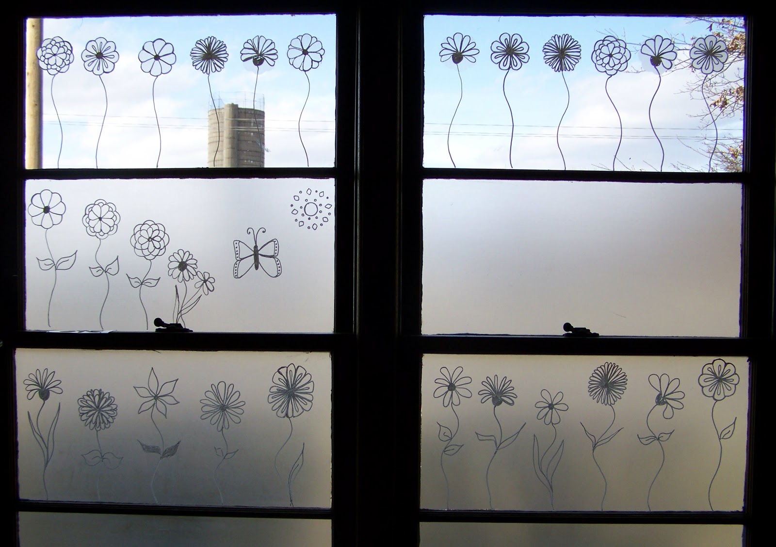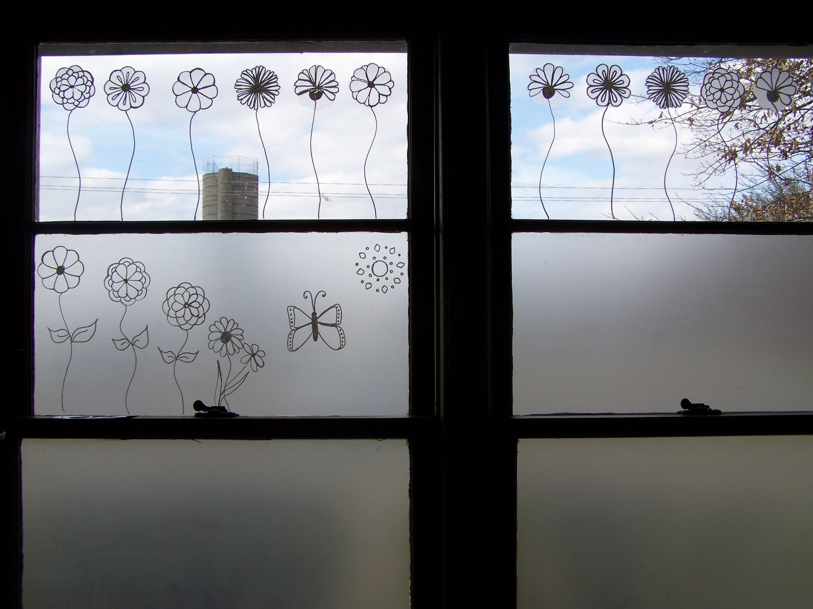 I keep finding non-adhesive contact paper. Was your's adhesive? And did you always use a white painters marker? The flowers look black on the inside and white on the outside. Thank you. I love this idea! My daughter is going to do it for her room as part of Mommy Camp this summer.