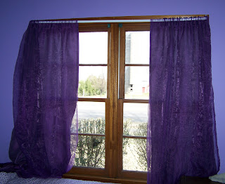 | 4) Decorating in process. I love the way the paint looks dark with the daylight shining through but at night, it is very white. I think the change in appearance is cool! |