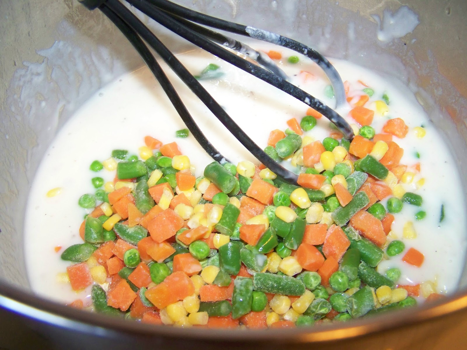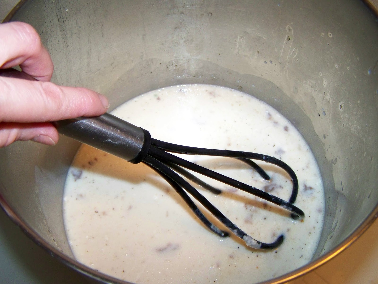 | 2) Whisk 2 cups of milk with 1/4 to 1/3 cup of flour. Blend until all lumps are gone. |