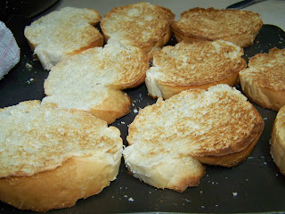 | 6) Toast french bread (or bread of your choice) under broiler. Watch carefully to avoid burning. |