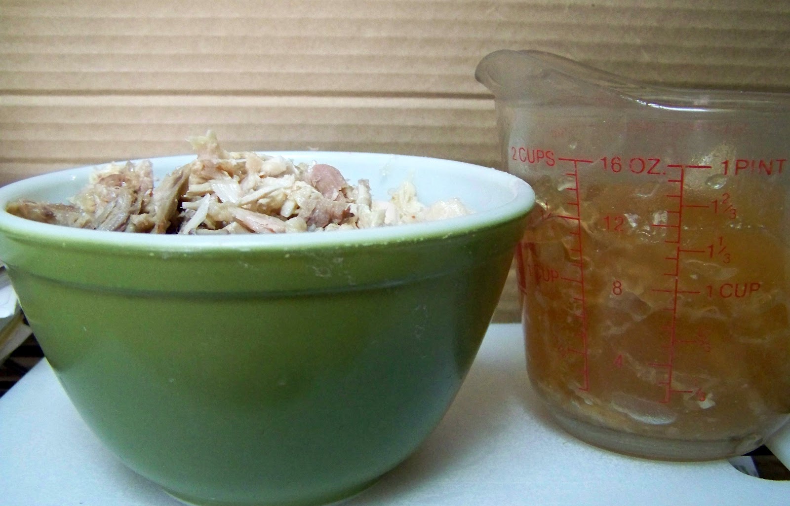 | 1) Dice approximately 2 cups of turkey. Collect the jelled broth. I seem to always come up with about 2 cups. |