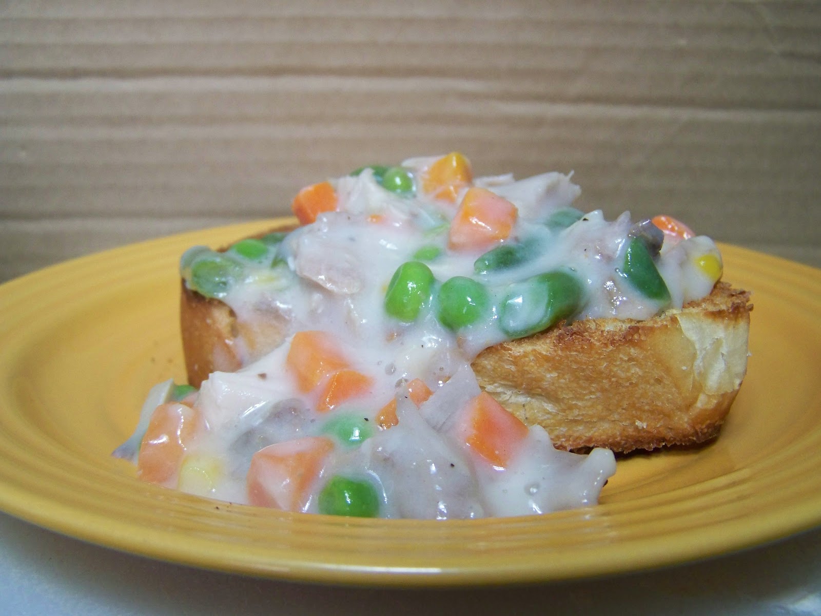 | 7) Pour creamed turkey over toasted bread. Serve with a salad for a delicious meal! |