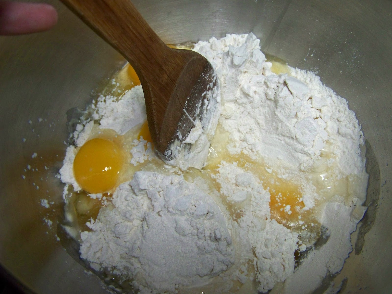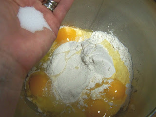 | 1) Mix 3 cups of flour, 4 eggs, 1 tsp salt and 1 Tbsp water |