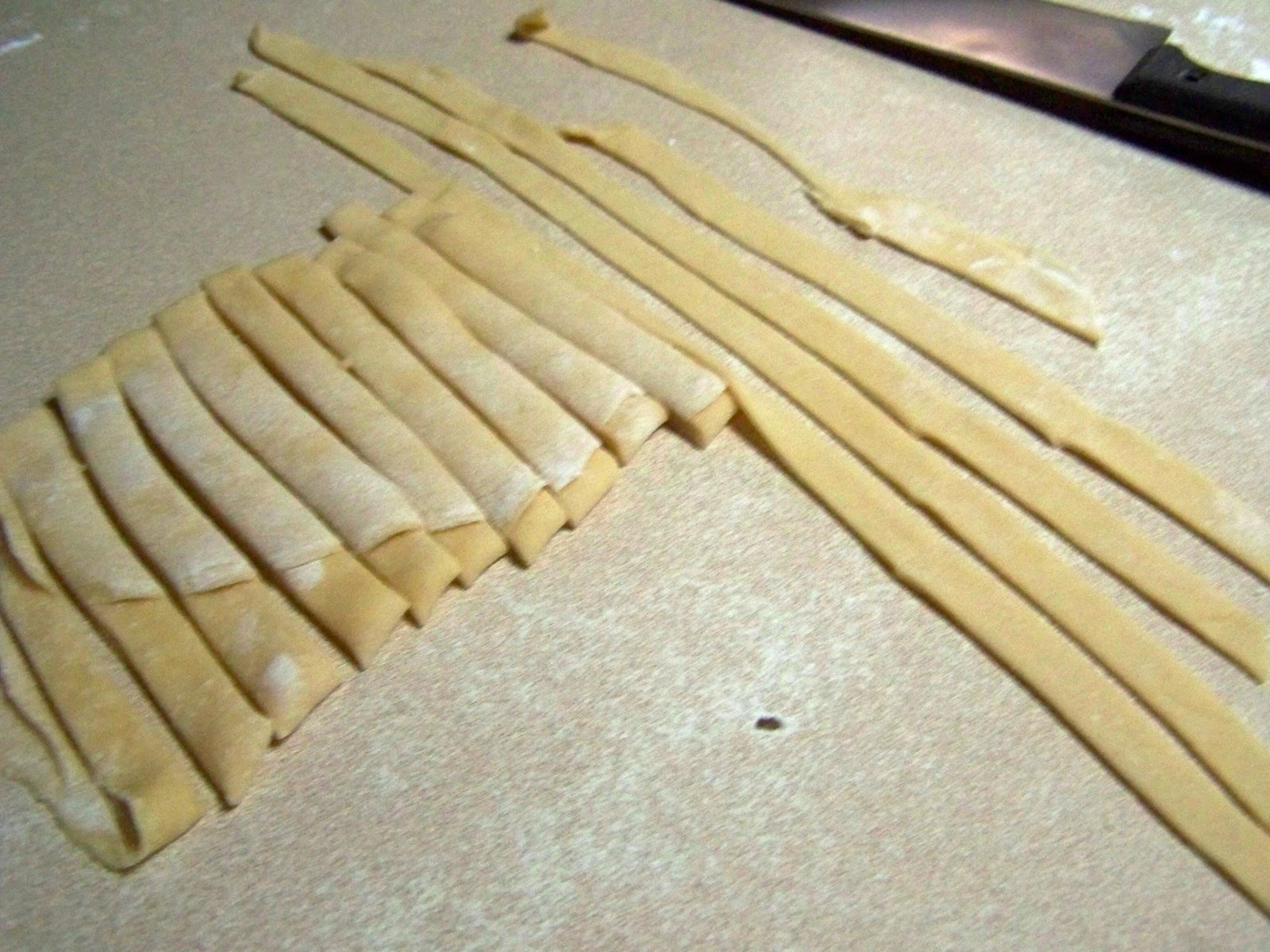 I use my Kitchen-Aid to make my noodles now, as it definitely saves time. I love my pasta roller attachments! But even if you don't have a pasta roller, you can make wonderful egg noodles with just a rolling pin, a knife and some good old fashioned elbow grease.