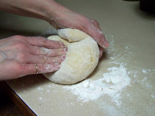 | 3) Knead dough with hands until smooth and elastic. Dough will be very stiff. |