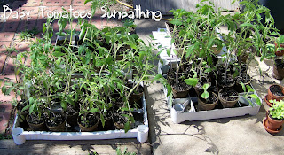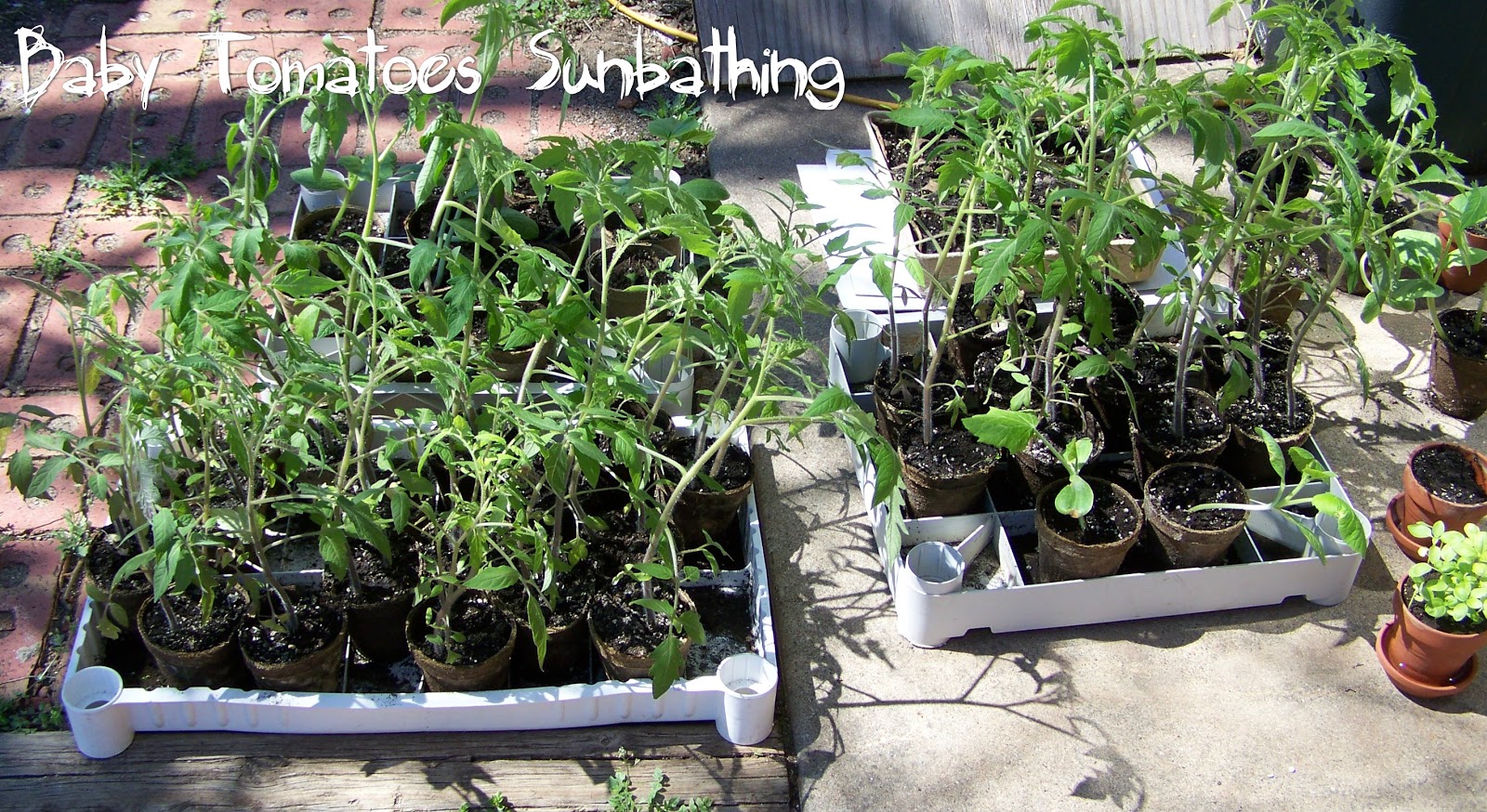 | Don't forget to take your baby plants out each sunny day to give them a little extra sun and to "harden" them in preparation for transplanting. I think the breeze is good for strengthening them! |