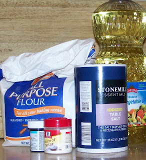 | You will need all purpose flour, salt, vegetable oil, cream of tartar, food coloring and water |