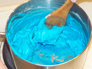 | 10) Stir constantly over low heat until dough thickens up. Note ~ dough will be difficult to stir. |