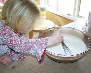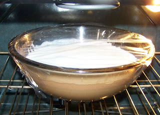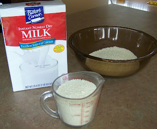 | 1) Preheat oven to 275 degrees 2) Measure 4 cups of non-fat dry milk into a large glass bowl. |