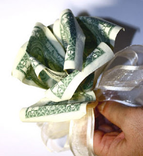 | Make a bouquet of money! See origami-n-stuff4kids for photo instructions. Very smart! |