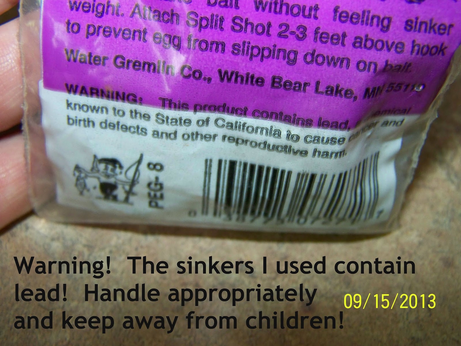 | Pay attention to the warning on the sinker package! I wouldn't handle lead if I were pregnant, nor would I let a child handle it. |