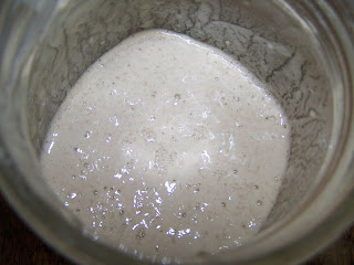 Most recipes I have found contain commercial yeast to make a sourdough starter. I love to try to do things the old fashioned way if possible so I searched until I found this method in Carla Emery's "Encyclopedia of Country Living".