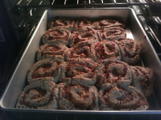6) Slice into 1/2 inch slices and place on a greased baking sheet.